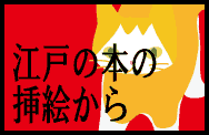 江戸時代の本の挿絵をイラストとして加工したものです。教材やイラストとして利用できます。ただ加工の過程で、見やすいように線を書き足したり、物によって背景や重なりなど不要な部分を取るなど、かなり手を入れているので、学術的には使えません。また原図の正確さについては自己責任でお願いします。 |