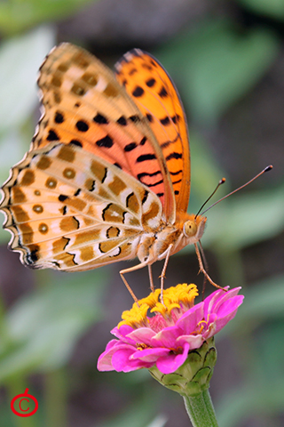百日草とタテハ