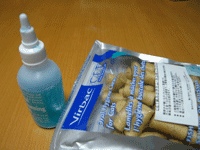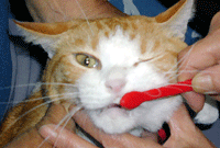 「まおちゃん、お口のうがいですよ」このオーラル・クリーニング・ジェルとかいうもの、歯石防止とかで最近の里親のブーム。でもくさいし青いし。ふんと横を向いていたら、羽がいじめにされ、口の中に青いジェルをたらしこまれた。猫のブライドずたずた。