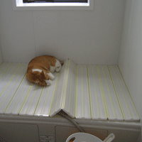 ぼくの消夏法 猛暑日が続く。毛皮猫としては耐え難い。かといって、クーラーに頼るなど猫の邪道だ。そこでぼくのあれこれ苦しい暑さしのぎ。涙ぐましい努力を紹介しよう。 本当は庭の涼しい緑陰で、地べたに転がるのが最高だが、うったりダニをあごの下に取り付かせたのを発見され、以来庭の草むらを禁止されてしまった。