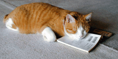 里親は図書館から本を借りてくる。本にはなにか退屈解消の効能があるようだ。そこで、ぼくも読んでみることにした。どこがエンタテインメントかさっぱりわからないほど、むやみに人が殺される。人間以外の生き物は、自分が生きるために必要な殺ししかしない。ぼくも空腹ならバッタを食べるだろう。ひもじくないぼくはバッタを食べたりしない。遊び過ぎて、バッタがばらばらになるという悲しいことはある。でも、人間も猫よりりこうとは思えない。こんなつまんない本で残り少ない人生を浪費するのだからね。この本を枕に昼寝しよう。悪夢をみなけりゃいいんだけど。 |