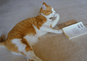 | 里親が鉢のシクラメンを手入れするのを、そばで観察していた。「シクラメンは毒だから食べてはいけませんよ」もちろん、猫はシクラメンなんか食べない。里親がいなくなると、鉢に手を突っこみ、里親が土に隠した固形肥料を掘り出す。チョイとイワシ風味か。軽く口にくわえて振り回すと、バラバラと飛び散る。これは怒られるスリル満点なのが、めっちゃ面白い。