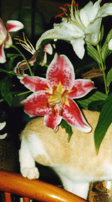 赤い首輪です。ゆりの花より可憐です。おなかもすんなりしてるでしょ。